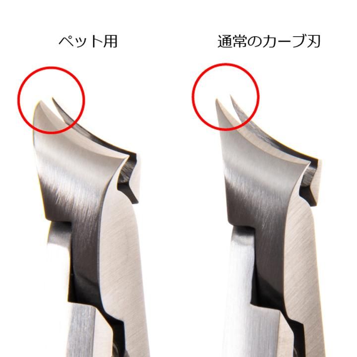 ペット用つめ切りは、わんちゃん、ねこちゃんに怪我をさせない、丸く加工された刃先も特長です。